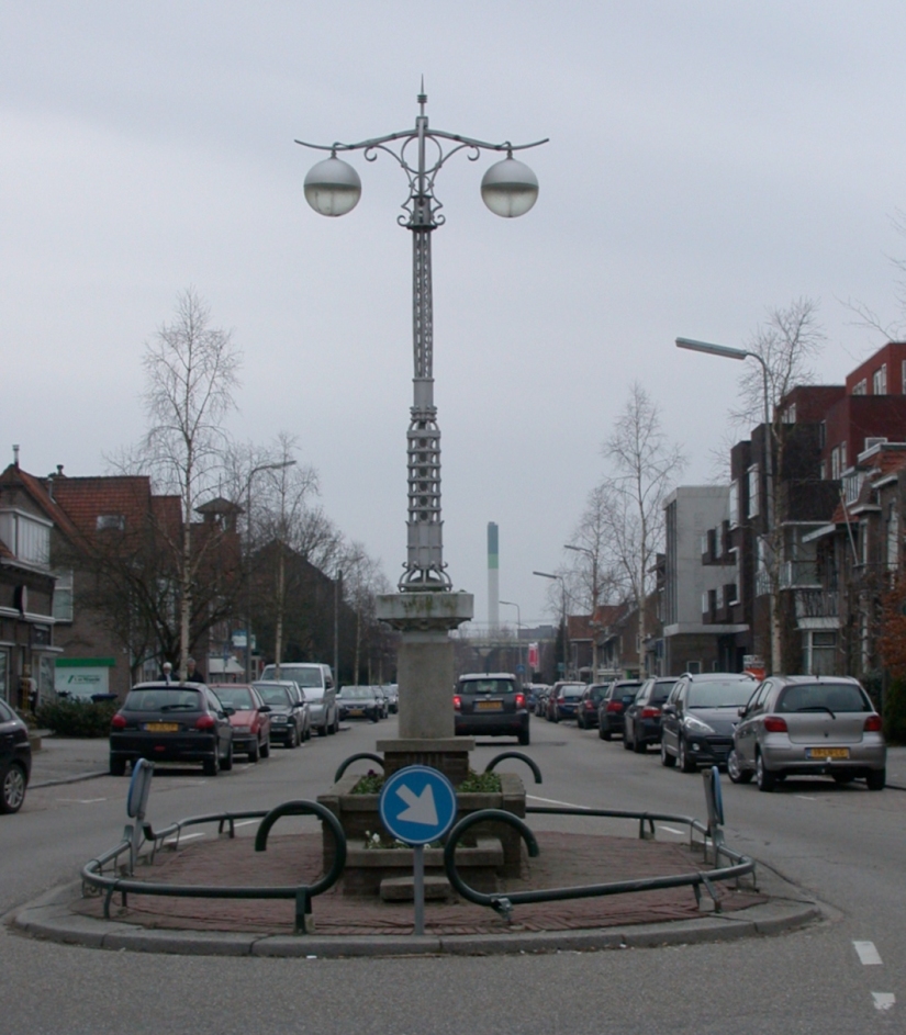 Gietijzeren tweearmige straatlantaarn op gemetselde sokkel. Midden in de laan gelegen; zijbanen splitsen zich. Rondom een bloemperk. Oorspronkelijk geplaatst op de hoek van de Burg. De Bruïnelaan - Rotterdamseweg, bij gelegenheid van het 40 jarig ambtsjubileum van Burgemeester de Bruïne (1877-1917). Ongeveer gelijktijdig geplaatst met de aanleg van de laan. De lantaarn werd later verplaatst naar het plantsoen nabij de Julianastraat / Prins Bernhardstraat.