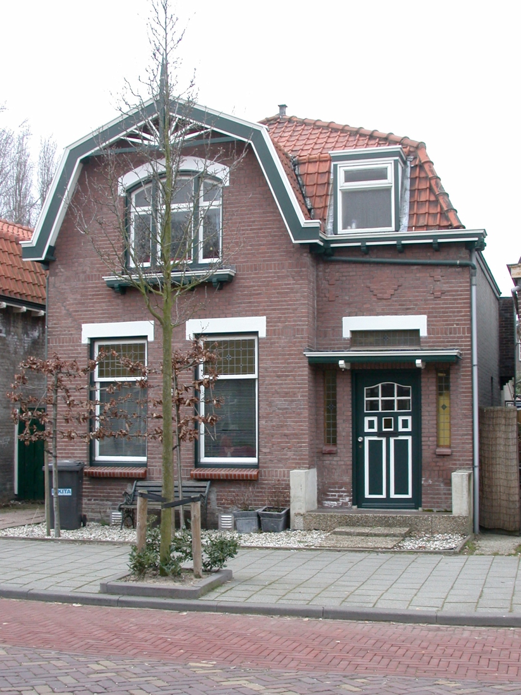 Zijgevel rechts is witte kalkzandsteen.