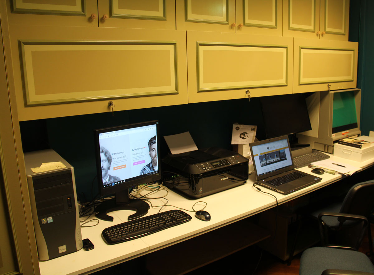 Studieruimte met computers  Bestanden van de Werkgroep Genealogie